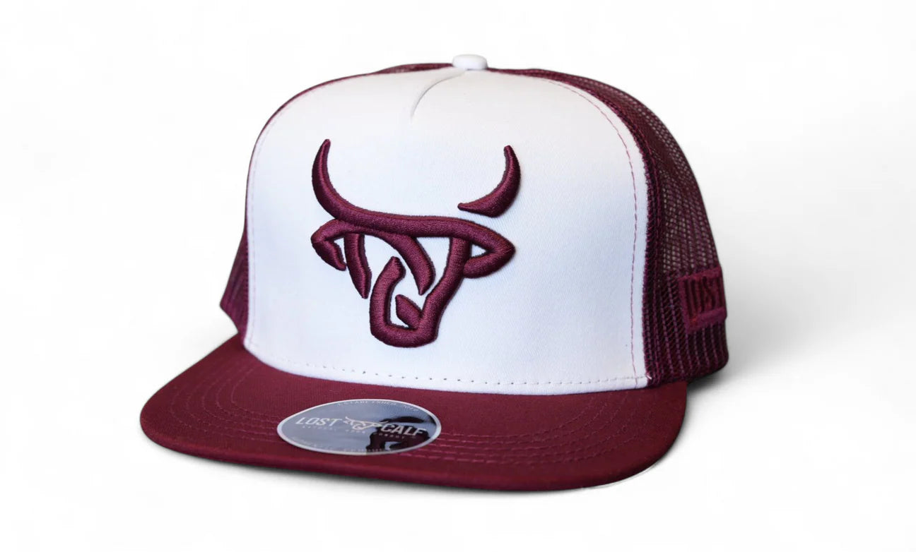 Baseball cap with Lost Calf logo embroidered on front in Black , Lost Calf stitched on left side. Snap back - one size fits all.