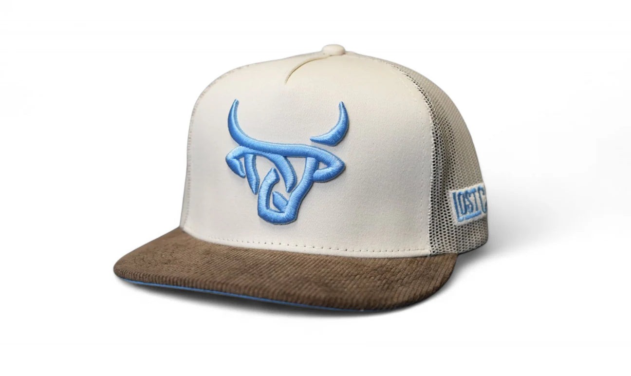 Baseball cap with Lost Calf logo embroidered on front in Black , Lost Calf stitched on left side. Snap back - one size fits all.
