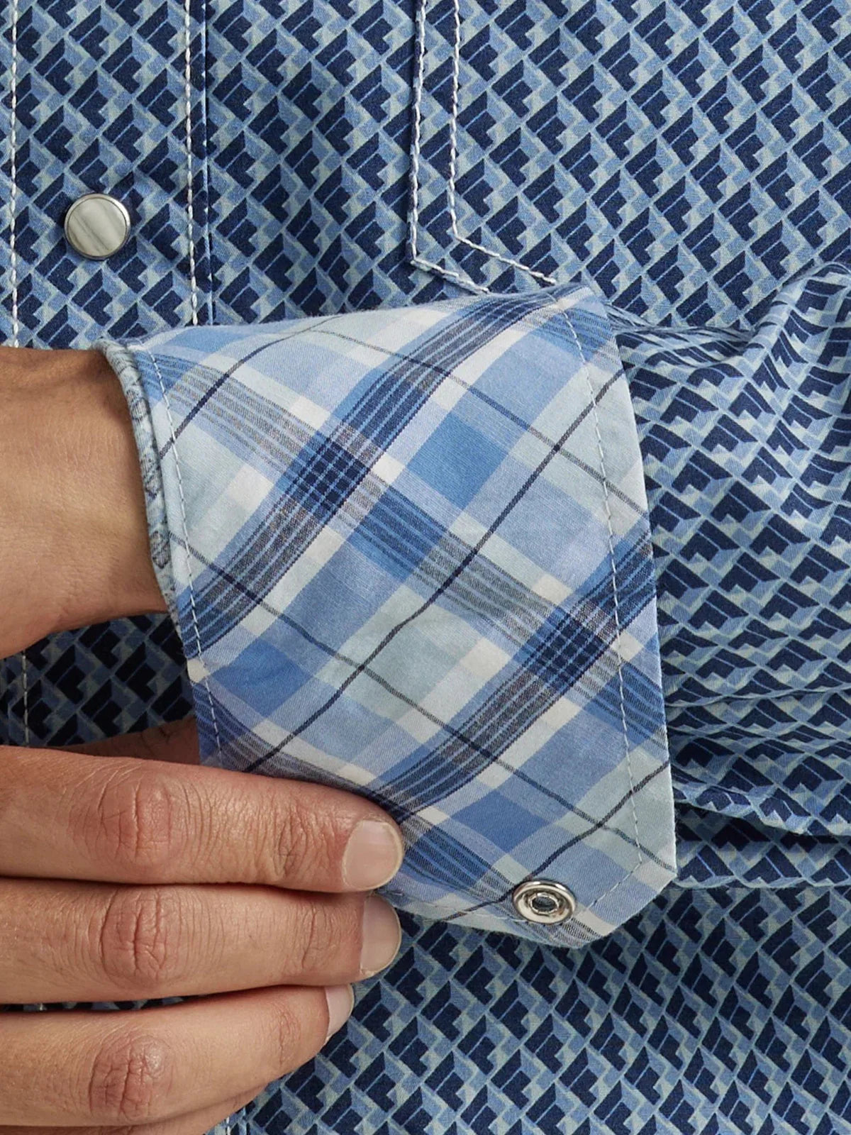 This level of comfort is a whole new rodeo. Performing under pressure is second nature to the men's Wrangler® 20X® Competition Advanced Comfort long-sleeve western snap print shirt. It's crafted from a comfortable cotton blend you can wear all year long and features a modern fit. It comes with a spread collar, pointed yokes, contrast stitching, snap cuffs, a curved hem, and full snap closure. With a bold print to help set your look apart, this long-sleeve shirt will give you the competitive edge in and out of the arena. Wear yours with a pair of 20X Advanced Comfort Competition jeans.