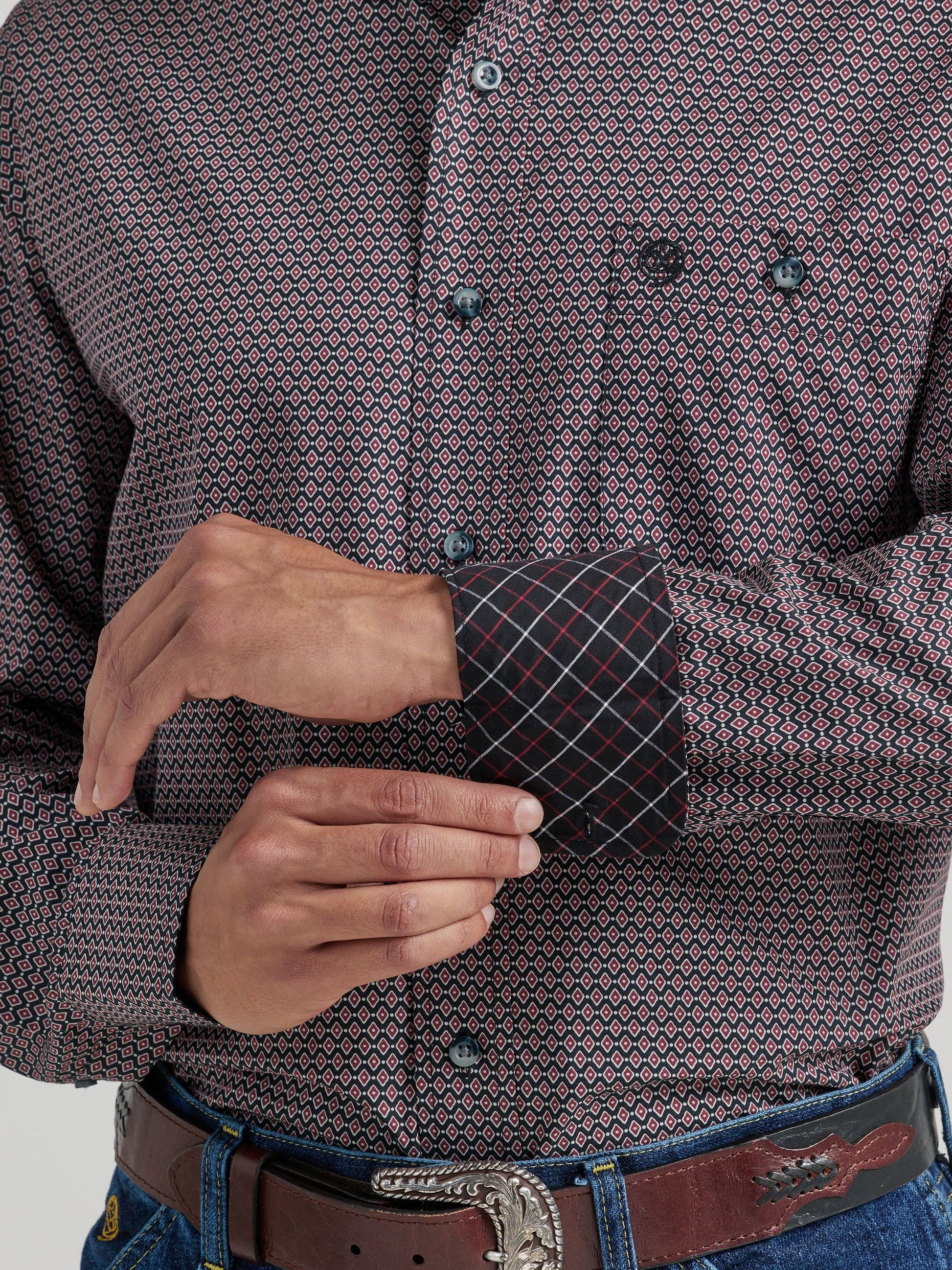 Wrangler Men's George Strait Deep Red Geo print Long Sleeve Shirt